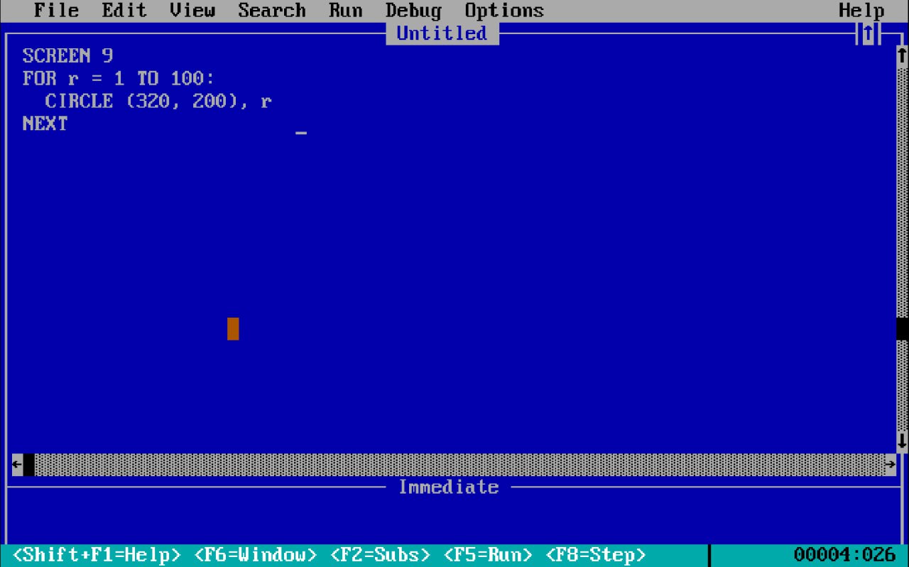 I no longer remember exactly how I ran it. There were not many options: either my father brought home from work a rare unseen beast - a laptop where qbasic could be started. Or I went to my father’s workplace and sat at a big computer there.
