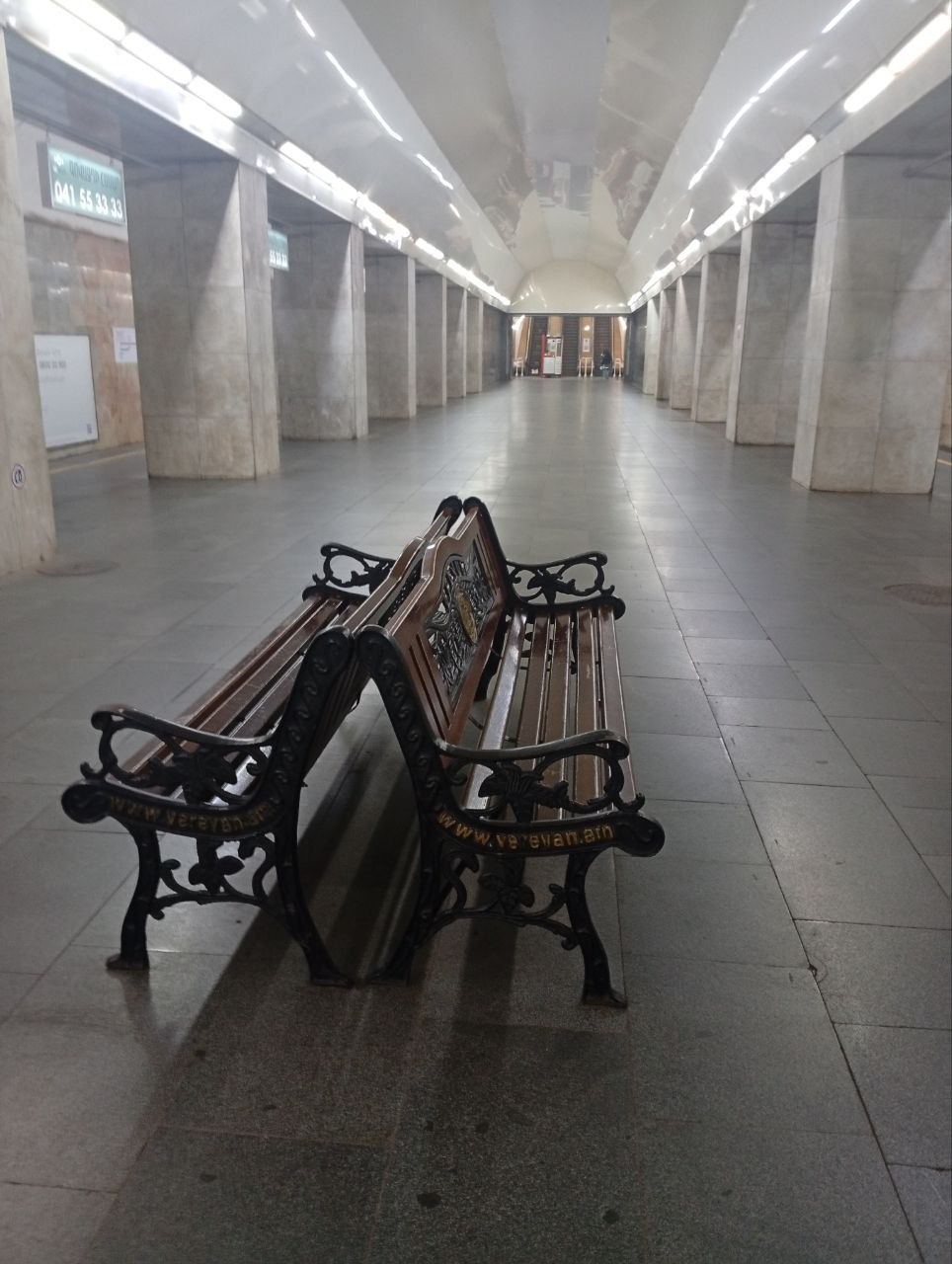 At Marshal Baghramyan station there are outdoor-style benches, as if someone planned to place them in a park, then changed their mind and moved them underground.