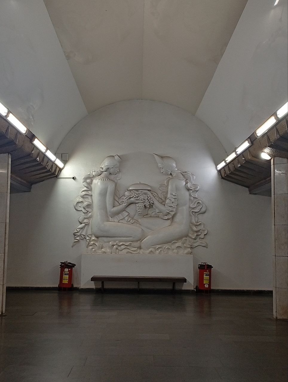 Of course, photos included: the stone bas-relief from Druzhba station wall and those very benches at Marshal Baghramyan station.
