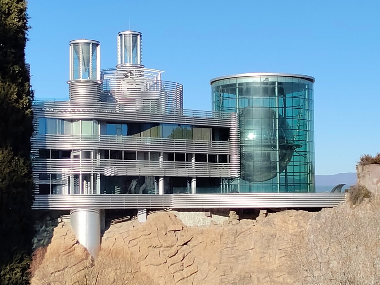 We climbed up and down the gorge slopes a lot. We also saw a very strange futuristic-looking building from the photo - an art object with rusty “leaves.”