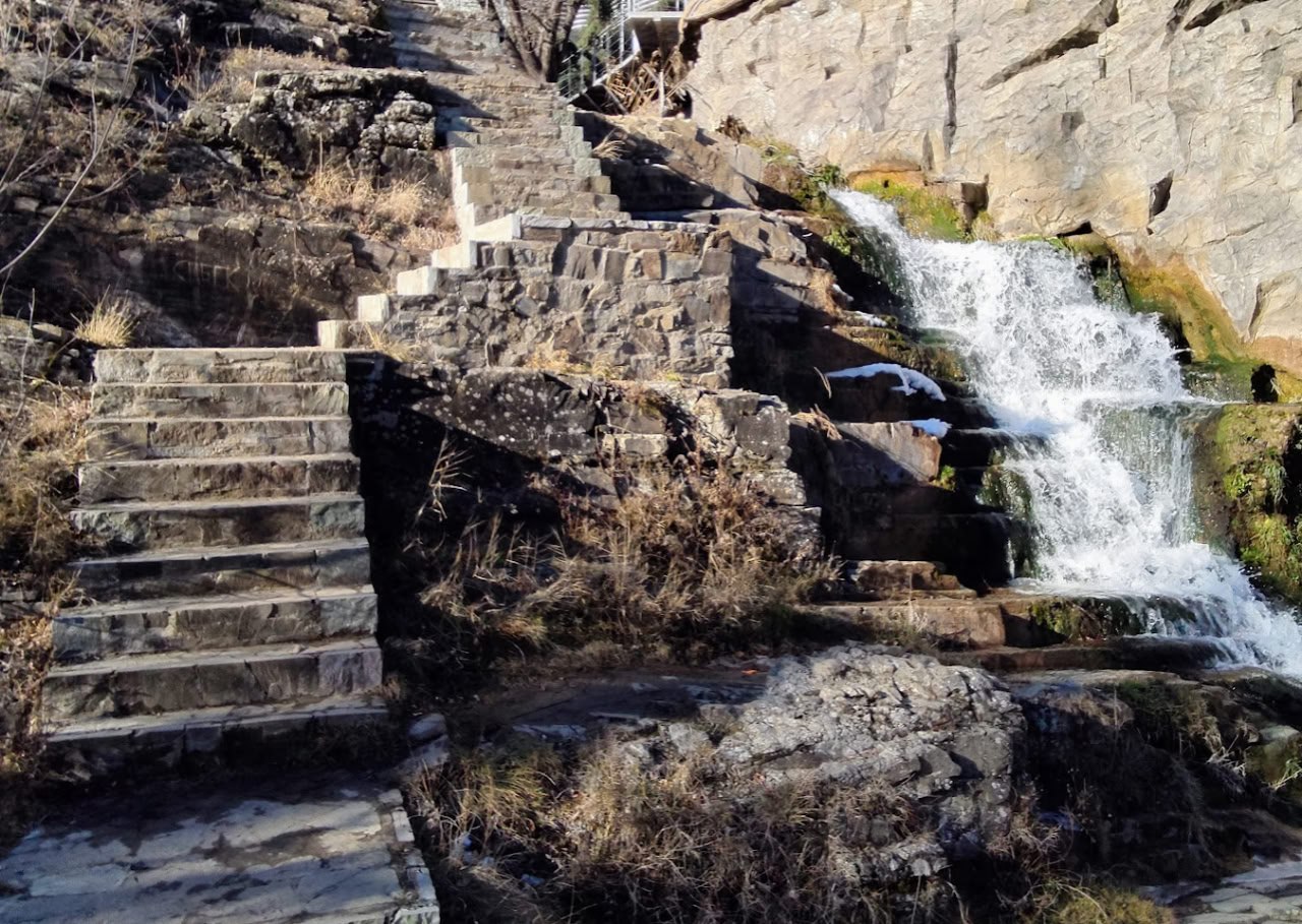 The botanical garden is in a gorge with its own microclimate. It is noticeably warmer there than in the city, and the air feels completely different. The microclimate also changes as you move through the gorge. Where we entered, it was warm, green, and did not feel like January 7 at all. Signs near the bamboo grove said that bamboo symbolizes purity of thought in China and friendliness in India. Farther along the gorge it became colder, and there was snow near a small waterfall.