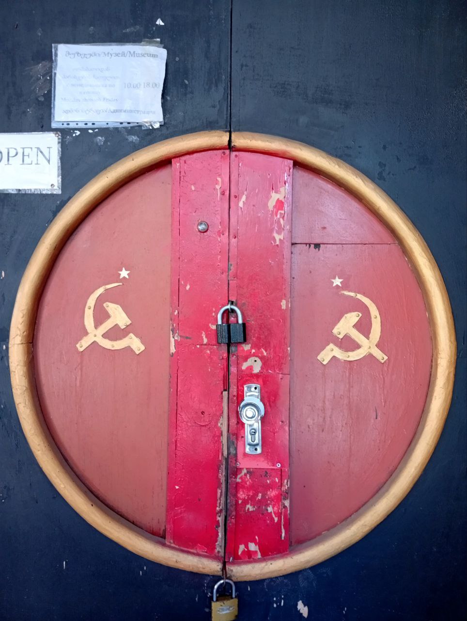 We did not get into the museum on our first attempt: it was closed, and a confused group of foreigners was waiting nearby too. On the second attempt, we got in. Right from the entrance, a friendly elderly man took us through what he called an unforgettable immersion into the Stalin-Lenin period. Later we learned he was a former security-service employee.