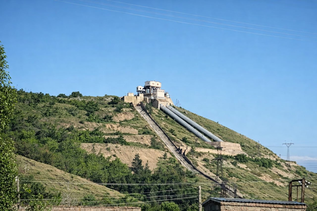 A very curious picture emerged. There is a hydroelectric station on a mountain. This broke my mental model: hydropower plants are supposed to stand on rivers. I have seen that in Irkutsk (Angara), in Volgograd. But here - on a mountain - a hydro station.