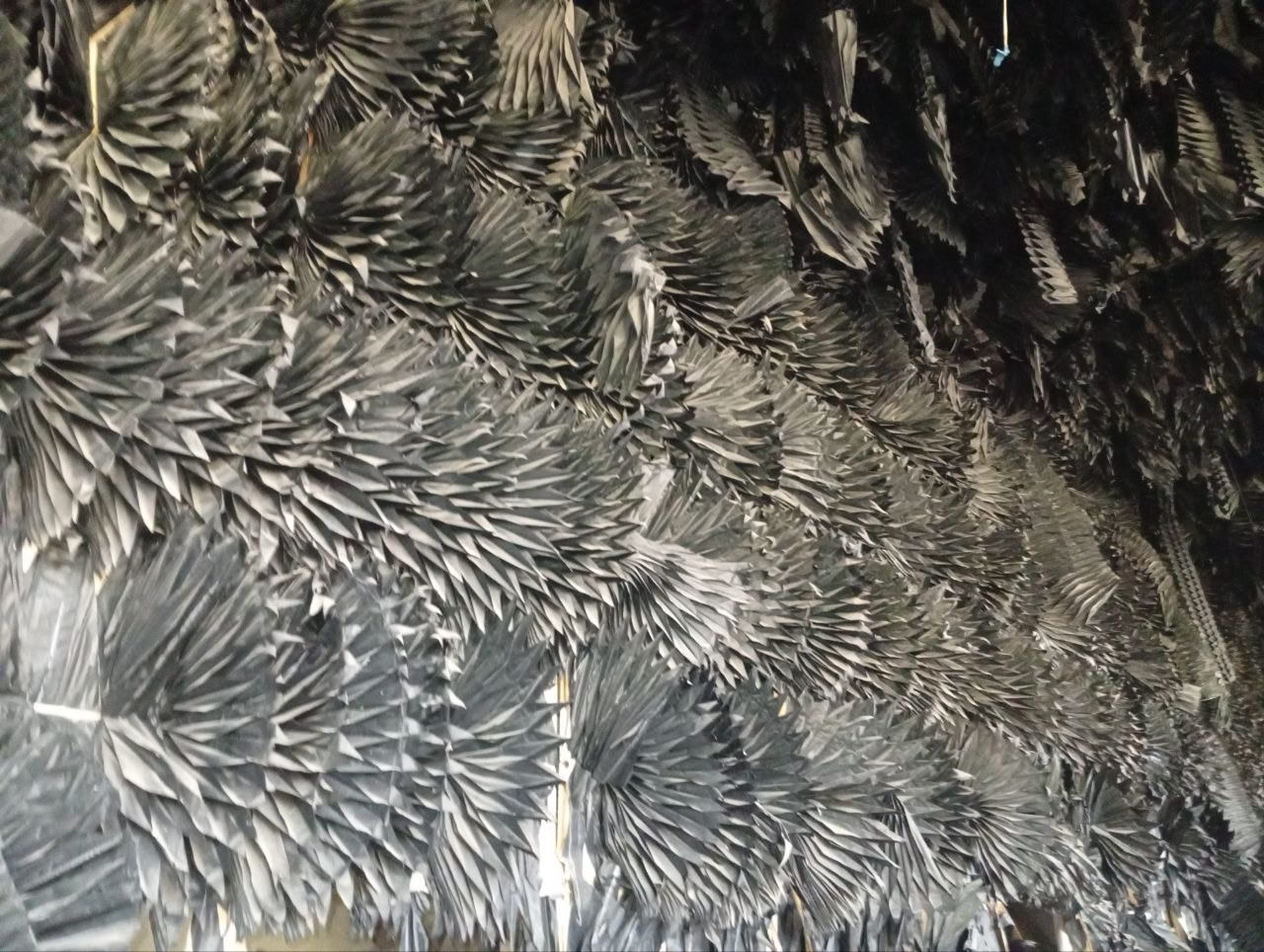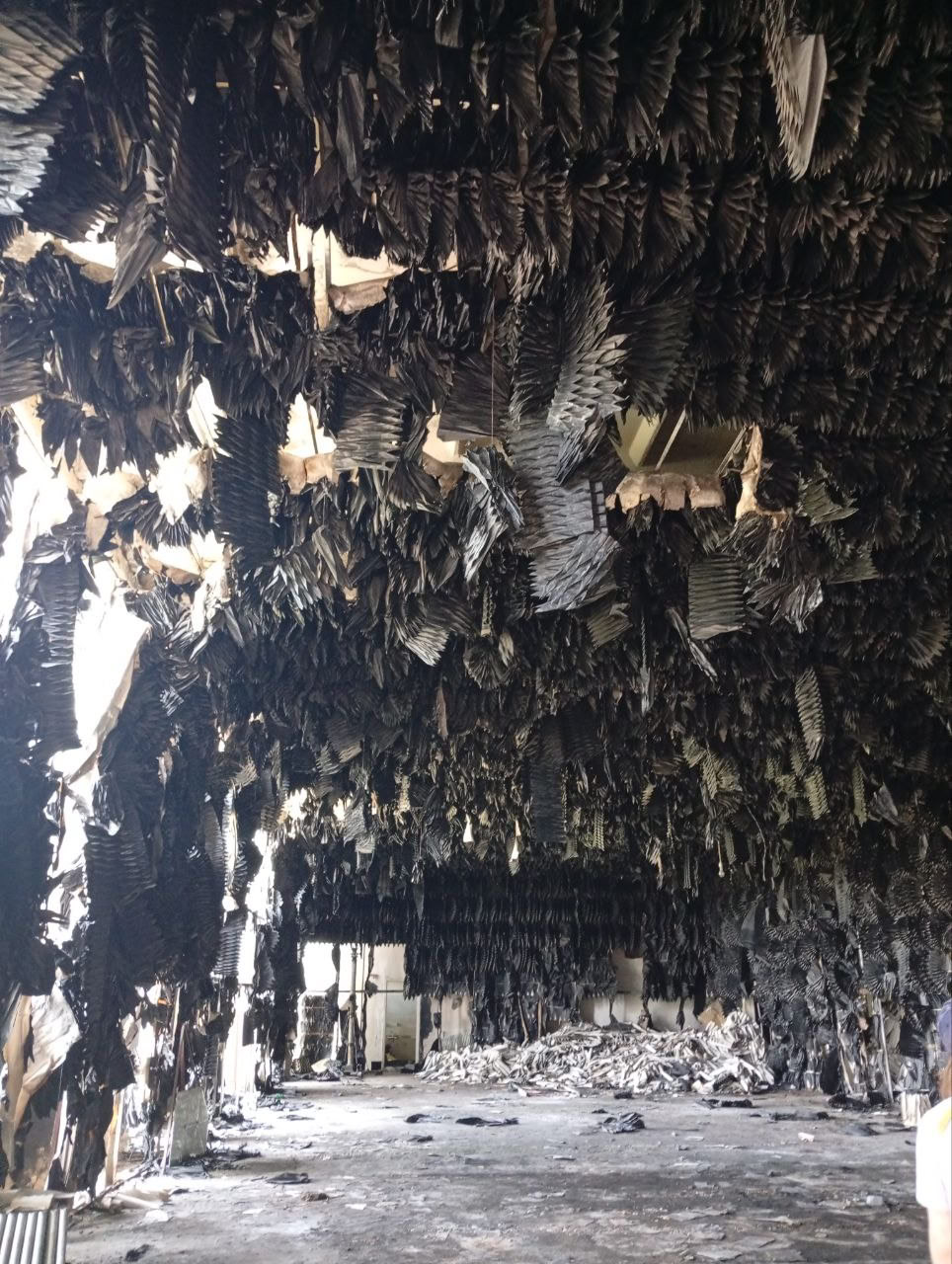 Now a small physics aside. A project like this could not operate by itself. If detectors are cooled to liquid-nitrogen temperature, sensitivity can increase by 3-4 orders of magnitude. So you need a nitrogen station. It is there - with boarded and welded doors. Super-sensitive equipment also needs calibration. I may lack enough domain depth to connect every technical detail correctly, but the two photos with burned decorative panels are ruins of a quiet acoustic room. The charred “fans” are parts of sound-absorbing lining.
