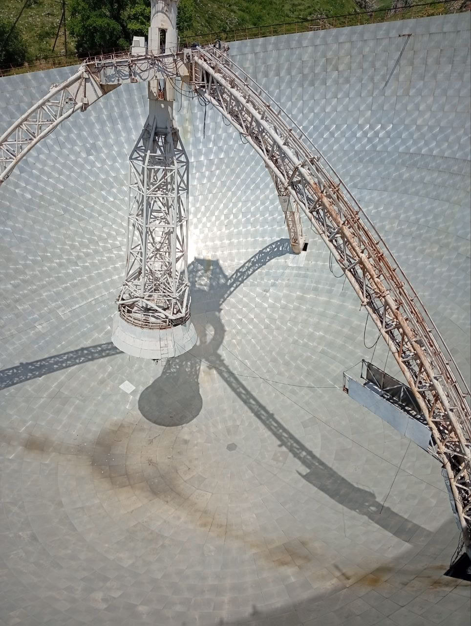 The Orgov radio-optical telescope ROT-54/2.6 is a unique structure combining a 54-meter radio dish and a 2.6-meter optical mirror. The radio dish is fixed; the optical part could be pointed. Construction took around 10 years near 1980, then it worked actively for about 14 years, and after that attempts continued until 2012.