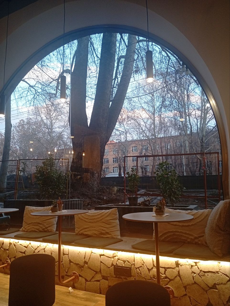 We walked from Moskovyan through Baghramyan and Komitas, then via Prague Park to Eraz. On Baghramyan, one mandatory stop is Lurik (the owl in the pharmacy) - we already wrote about her. We also entered the modern Surb Khach (Holy Cross) church - huge and very minimalist. Then we visited our favorite cozy cafe, Altar. Photos from the walk are attached.