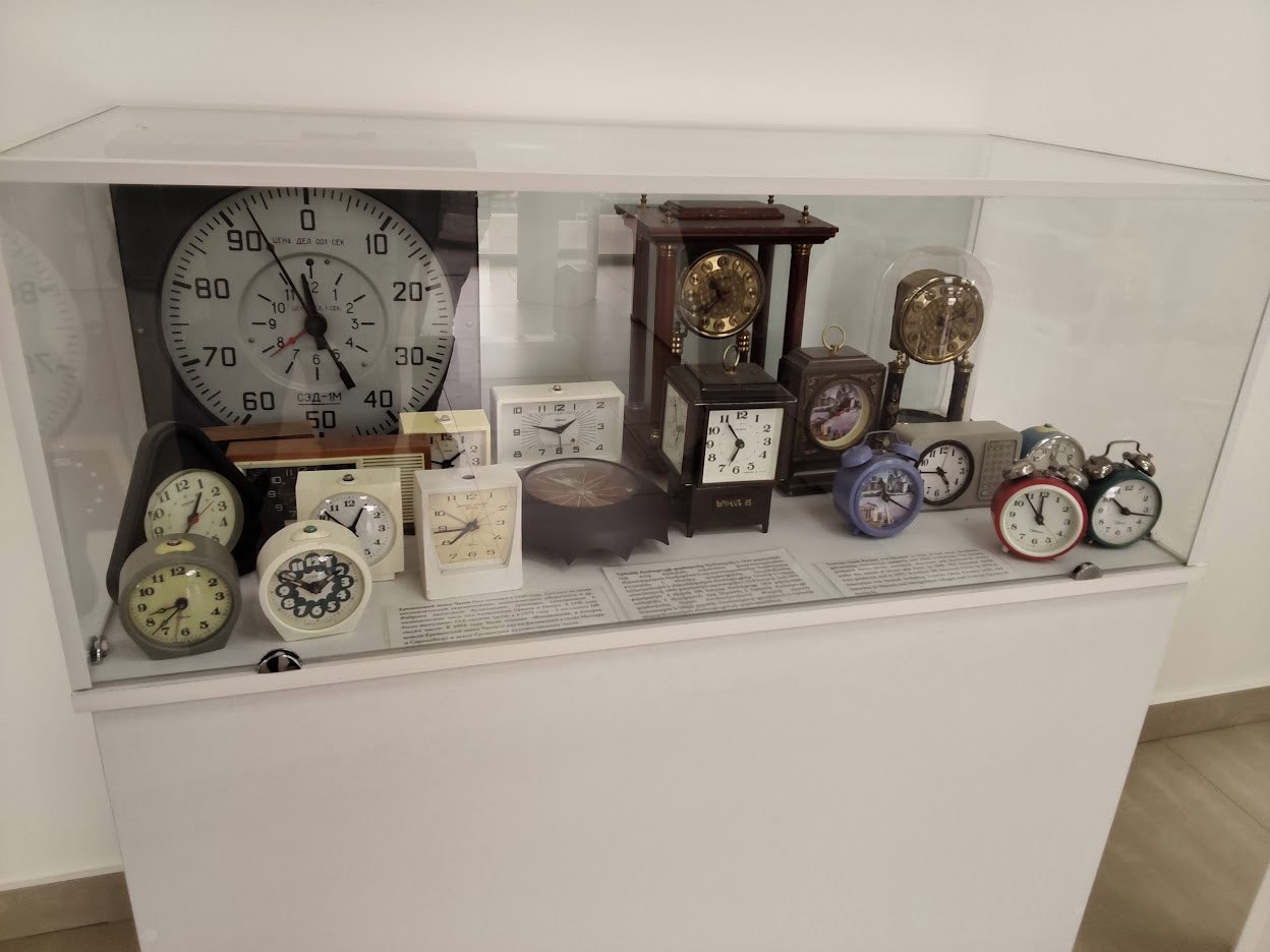 Первый стенд - будильники с марками Севан, Наири. Дизайн, как говорится, знакомый с детства.