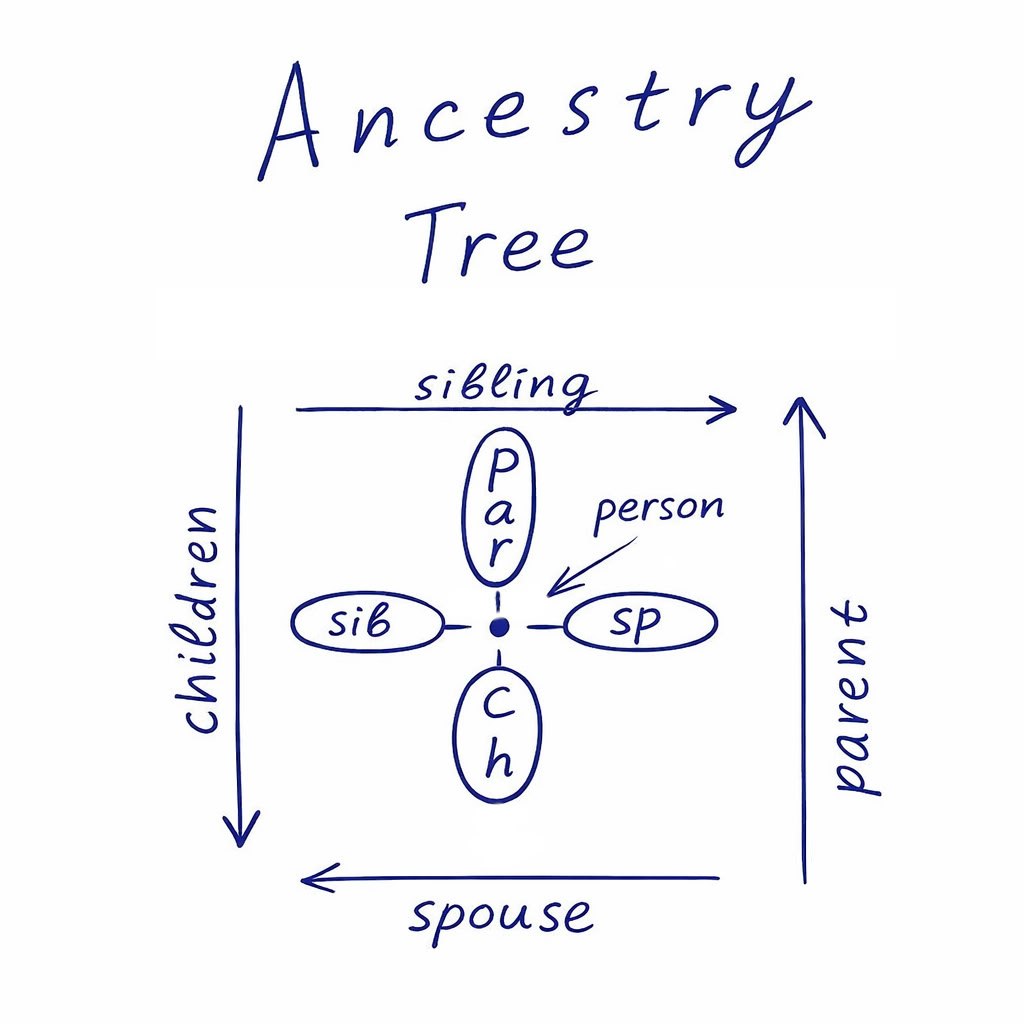 Не сразу, но мы поняли, что один про горизонтальное направление в генеалогическом дереве, второй - про вертикальное.